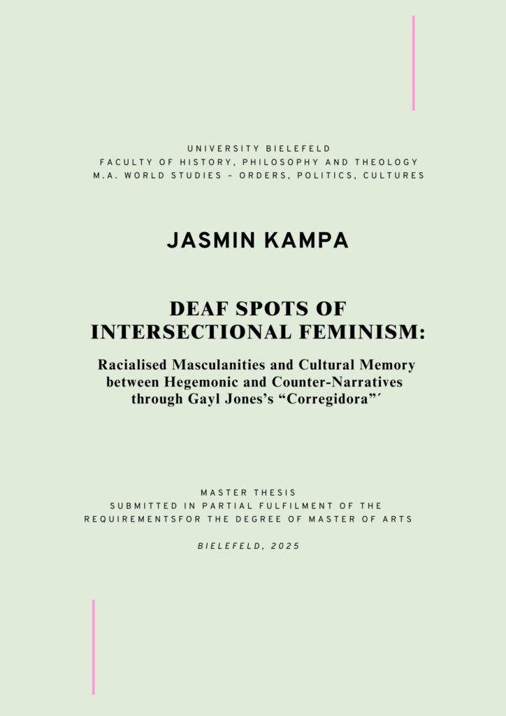 Im Rahmen meines Masterstudiums der World Studies (M.A.) habe ich mich in meiner Abschlussarbeit mit einem Thema beschäftigt, das mich fachlich wie persönlich nachhaltig prägt: den blinden Flecken intersektionaler feministischer Diskurse im Hinblick auf rassifizierte Männlichkeiten sowie der Frage, wie Literatur als eigenständiger epistemischer Raum gesellschaftliche Machtverhältnisse sichtbar machen und irritieren kann.